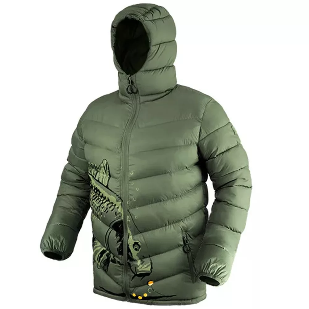 Ha Ön egy olyan horgász, akit a leghidegebb időjárás sem rettent el, a Delphin Catch me WINTER CARP kabát egy olyan téli ruhadarab, amelyben nyugodtan megbízhat. A vastag hőszigetelő réteg védelmet nyújt a fagy és a szél ellen, így Ön mindig melegben és kényelmesen érezheti magát. Ez a kabát egyszerre nagyon kényelmes és kellemes viselet, így lehetővé téve a horgászathoz szükséges mozgásszabadságot. A kabát strapabíró anyagokból készül, és minőségi kidolgozás jellemzi. A kabát elején két, sötétzöld színű, kiváló minőségű cipzárral ellátott zseb található. A kabát kiváló tulajdonságai mellett stílusos dizájnjával is kitűnik. A sötétzöld szín, amelyet egy éppen táplálkozó ponty nagy grafikája egészít ki, még a legelhivatottabb pontyhorgászt sem hagyja hidegen. Sőt, a hátoldalon egy érdekes szlogen is olvasható, az ujjain pedig Delphin logóval ellátott gumibélés található.Anyagösszetétel:A kabát külső anyaga: 100% nylonBelső réteg: 100% poliészterBélés: 100% poliészter