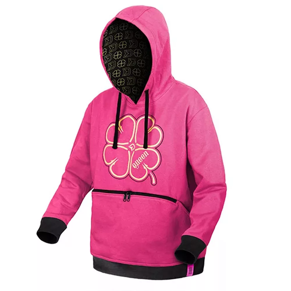 Egy stílusos, eredeti dizájnnal rendelkező kapucnis pulóver; a QUEEN 4Love pulcsiban minden női horgász kényelmesen érezheti magát. Merész rózsaszín színű, fekete elemekkel és sárga nyomattal, hogy mindenhol megforduljanak Ön után.