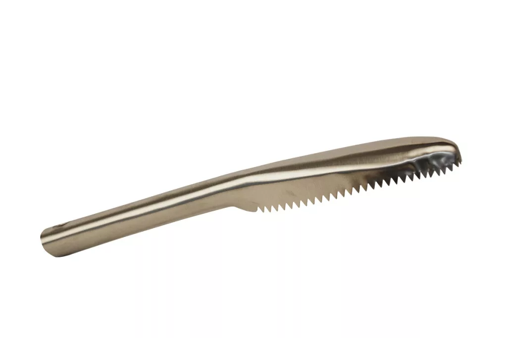 Hatékony segédeszközei a haltisztításnak a különféle pikkelyező kések. Kiváló minőségű rozsdamentes pengével rendelkezik, speciális fogazatának, alakjának köszönhetően gyors és rendkívül alaposan munkát produkál. Vastag, ergonómikus kialakítású nyele kényelmes, stabil fogást biztosít.