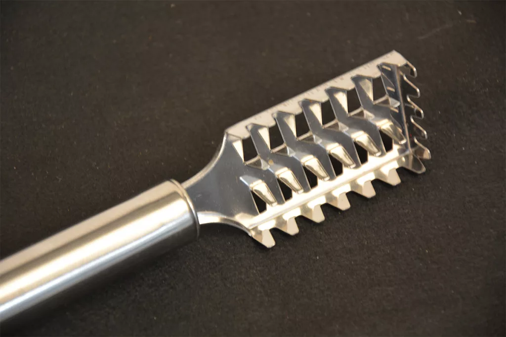 Hatékony segédeszközei a haltisztításnak a különféle pikkelyező kések. Kiváló minőségű rozsdamentes pengével rendelkezik, speciális fogazatának, alakjának köszönhetően gyors és rendkívül alaposan munkát produkál. Vastag, ergonómikus kialakítású nyele kényelmes, stabil fogást biztosít.