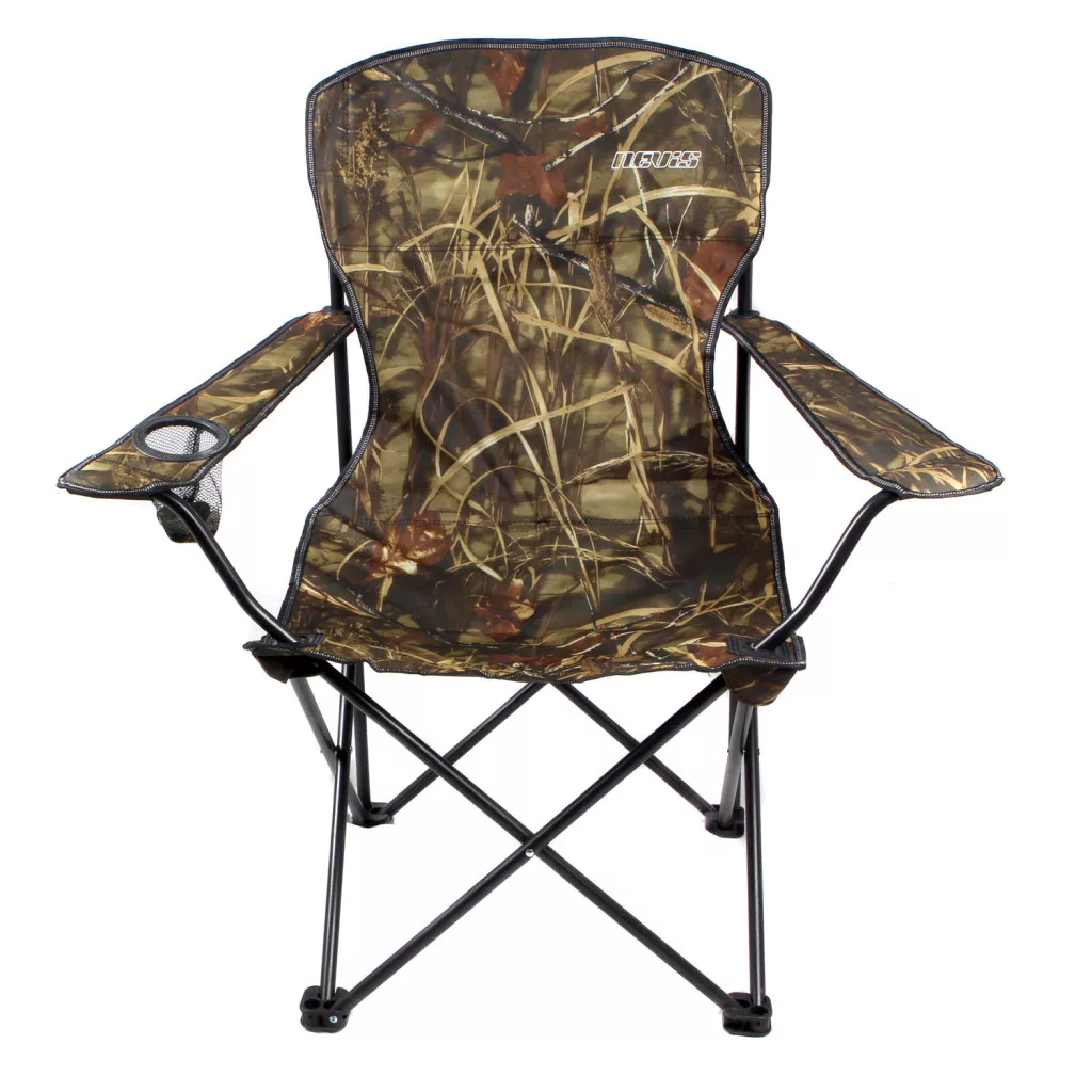Erős, terepszínű vászonból varrva. A karfába épített hálós pohárartóval.