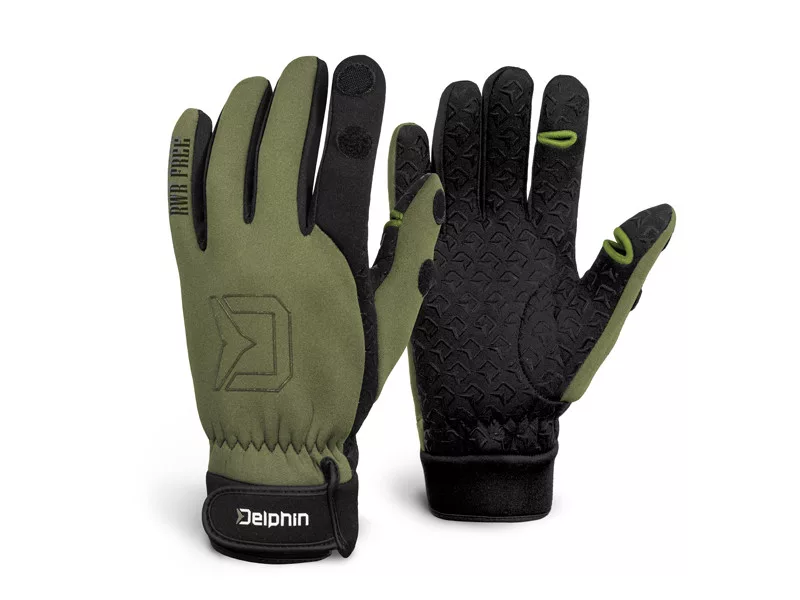A Delphin RWR Free neoprén kesztyűk még a leghidegebb napokon is melegen tartják a kezét. A kesztyűk részletes kidolgozása, a téli horgászat komfortját egy teljesen más szintre helyezi. Nagy pozitívum még a tenyér gumírozott felülete, amely csúszásgátló, gumírozott réteggel van ellátva, innovatív Delphin logóval. A hüvelyk- és mutatóujj végén levehető végek, tépőzáras rögzítési lehetőséggel, megkönnyítik az apró cikk kezelését vagy felgyorsítják a végszerelék elkészítését. Hogy ne kerüljön a kesztyűbe hideg vagy nem kívánt víz a csuklójára, a tömítésük belevarrt gumiból készült, és tépőzáras szorító övvel is állítható. A zöld és fekete színkombináció az RWR Free kesztyűket tökéletes társsá teszi horgászathoz és egyéb szabadidős tevékenységekhez.