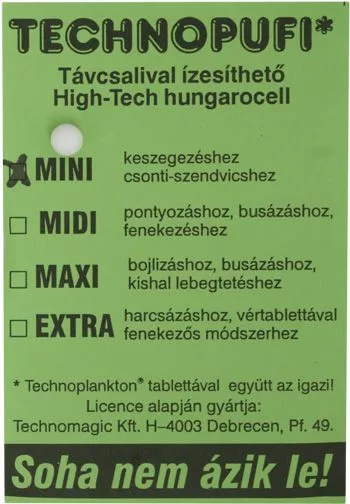 Optimális keménységű, színes, aromásított, horogra való műanyag habgolyócska, fenekezős horgászathoz. Lebegteti a horgot.Önmagában is fogós, de hagyományos csalikkal is kombinálhatjuk.Méretválaszték:Mini: keszegezéshez, csonti szendvicshez,Midi: pontyozáshoz, busázáshoz, fenekezéshez,Maxi: bojlizáshoz, busázáshoz, kishal lebegtetéséhez,Extra: harcsázáshoz, vértablettával fenekezéshez.Ízválaszték:natúr, vanília, ánizs, pontyMix, dévér, méz, eper, amur, kagylóSzínes, mega változata kiválóan alkalmas pl. bojli lebegtetésére.